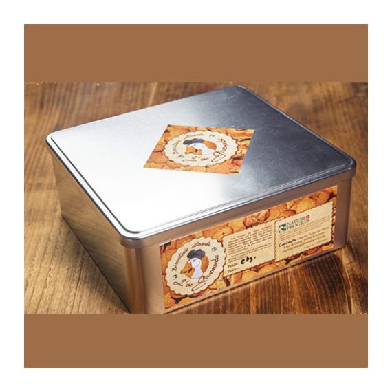Boite en métal grand modèle, composée d'un assortiment de 57 biscuits faits main et préparés uniquement avec des produits naturels biologiques,...