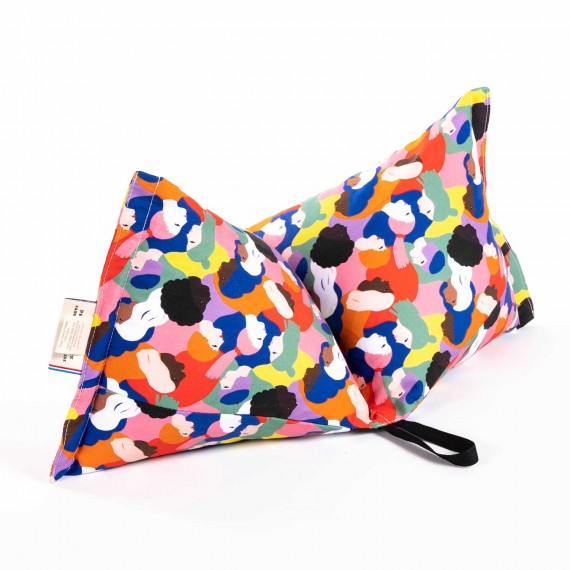 Coussin cale-nuque éco-responsable en tissu avec du coton bio et avec un garnissage en fibres recyclées.