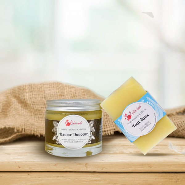 * Un Baume Douceur (125 ml) : Formulé à base de beurre de coco et calendula.