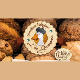 Biscuits préparés artisanalement et uniquement avec des produits naturels biologiques, sans colorant ni conservateur, certifiés en Agriculture Biologique ou Nature & Progrès. L'essentiel des ingrédients proviennent des producteurs locaux : farine, noix et œufs.