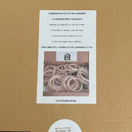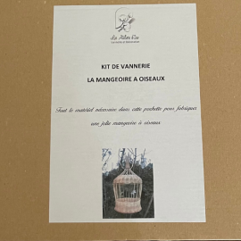 Le kit de vannerie « la mangeoire à oiseaux » est une création assez simple à réaliser, accessible aux débutants en vannerie et aux enfants à partir de 10 ans sous la surveillance d’un adulte (compte tenu de l'utilisation de ciseaux nécessaire à la réalisation).